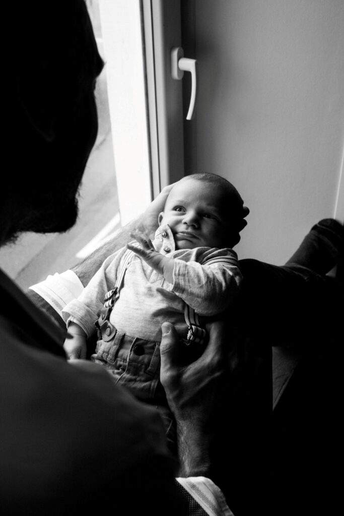 Je prends le temps d’observer la lumière, les espaces et l’ambiance de votre quotidien lorsque la séance a lieu chez vous. Les échanges, l’observation et la prise de vue se mêlent dès les premières minutes : un enfant qui joue, un bébé qui dort, un moment calme ou spontané.